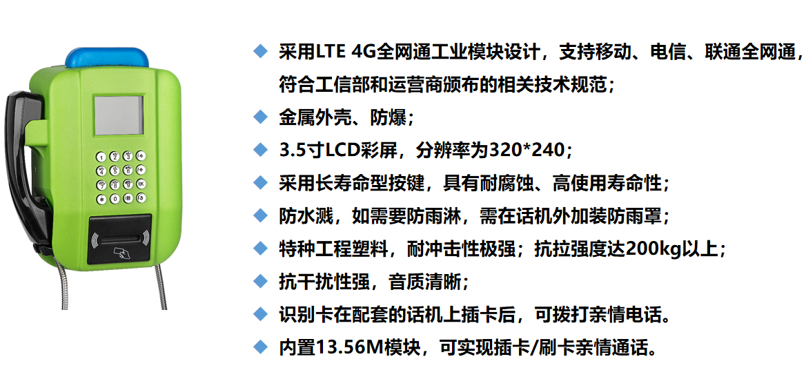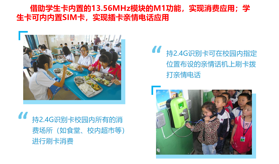 针对校园不让带手机,学生与家长需要沟通情况,校园无线插卡亲情话机可有效的解决这一问题。亲情话机配合学生专属学生卡即可实现亲情通话,让家长能够及时全面的了解学生的动态及需求。校园学生卡兼顾校园一卡通功能,可实现M1钱包、远距离考勤、近距离刷卡门禁等功能。
